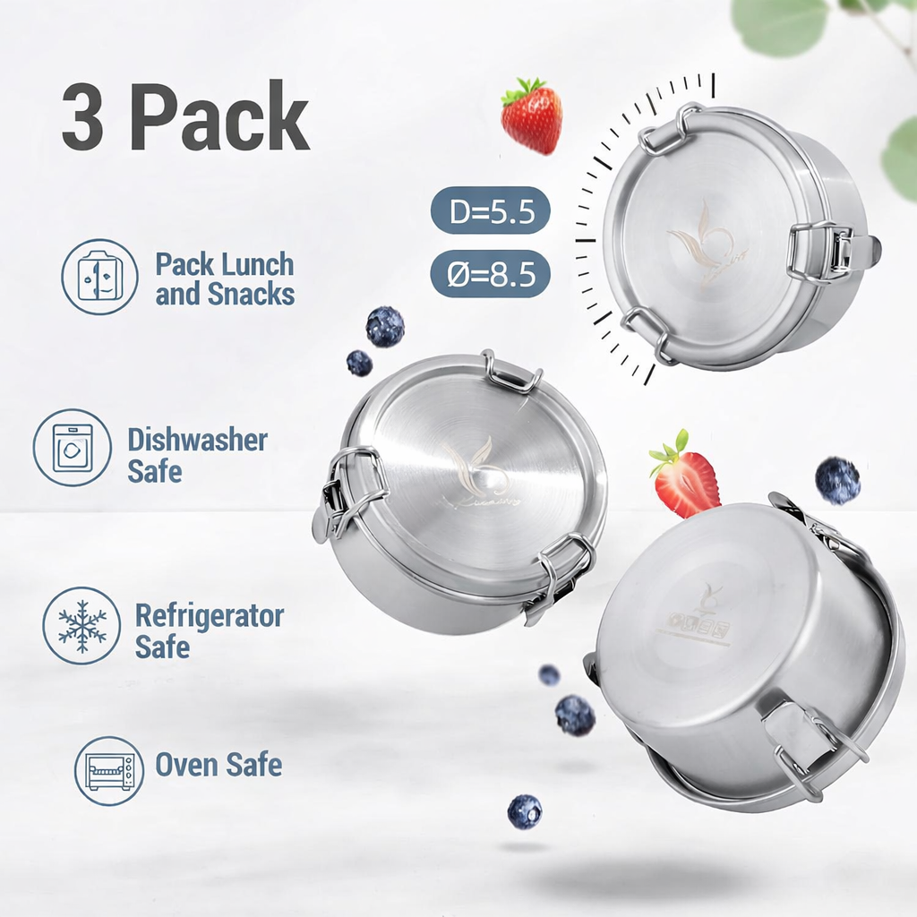3 x stainless steel cans